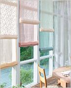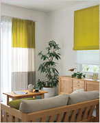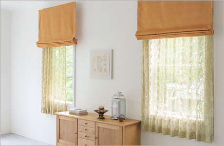 お好きな生地(※)を選んで製作することができます。カーテンのような左右のたまりがなく、生地が上に上がるので窓辺をスッキリと演出します。カーテン生地本来のデザイン性を楽しむだけでなく、お好みで調整可能なレースとのツインシェードもあり、隠したい所まで生地を降ろしたり調整が出来、便利です。